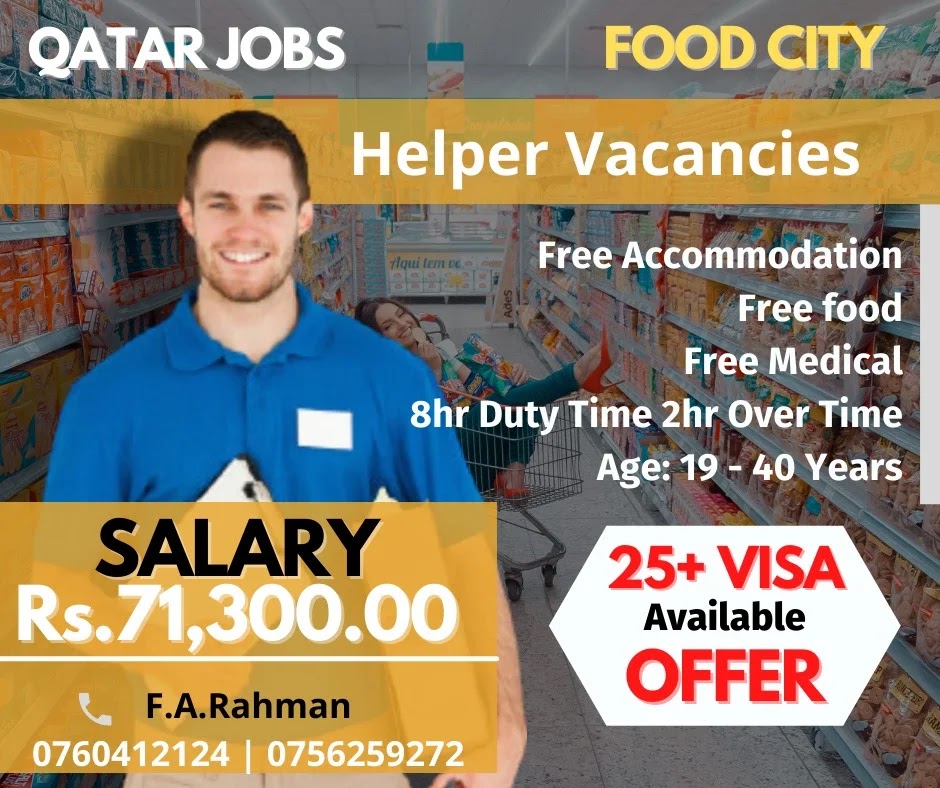 Foreign Jobs in Sri Lanka agency 2021. More than ten supermarkets, food cities request us to recruit for Supermarket Helper Jobs in Qatar with so many benefits. And we provide the best offer VISAs to Sri Lankan youngsters. And you can get a job in Qatar supermarkets in different categories such as helpers, Store Keepers, Store Helpers, Cleaners, cashiers, Salesmen, Accountant, Managers, Customer relation officers, Marketing officers, and more. This month we have updated details of some supermarket Jobs. So keep following us to get free foreign job alerts every day.